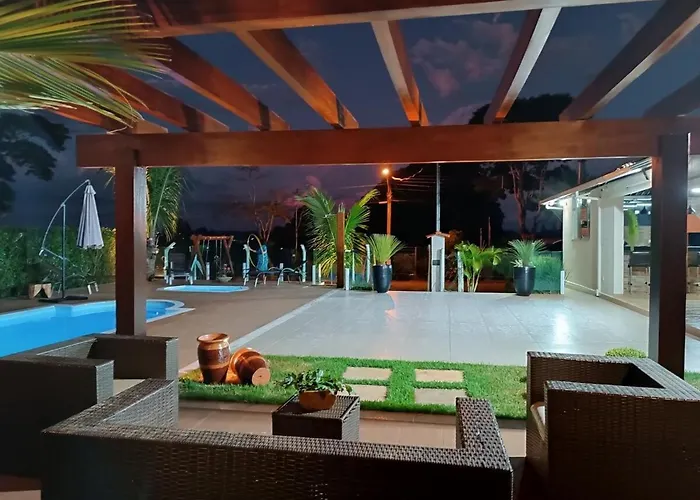 Juntamente com comodidades auto-suficientes, como cozinha equipada, a acomodação também disponibiliza uma área de refeições ao ar livre e zona de refeições. Os hóspedes também podem usar máquina de café/chá, refrigerador e artigos de vidro para preparar a sua própria refeição. Os hóspedes podem desfrutar de um jantar no Churrascaria Morada do Sol, localizado a apenas 1.2 km de distância.